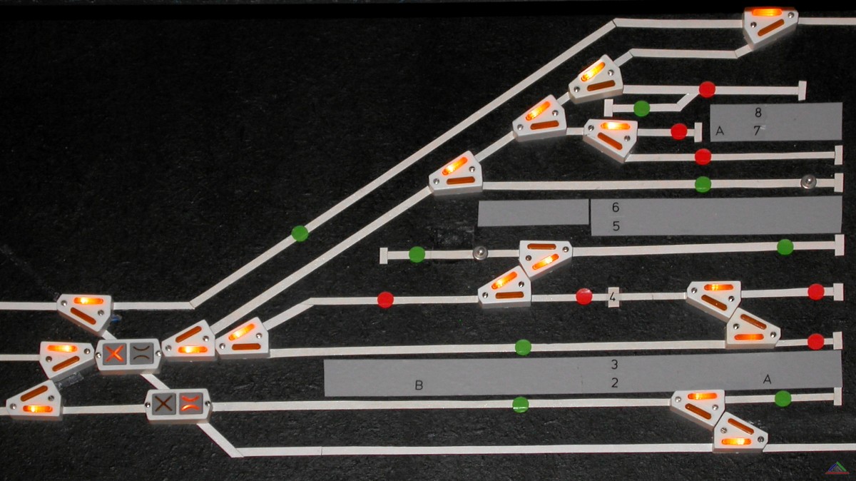 2. Nachdem im ersten Schritt schon Fahrstrom und Entkuppler der Abstellgleise in je einem Schalter vereinigt wurden, ist nun auch noch die jeweilige Weiche diesen Schaltern zugeordnet.